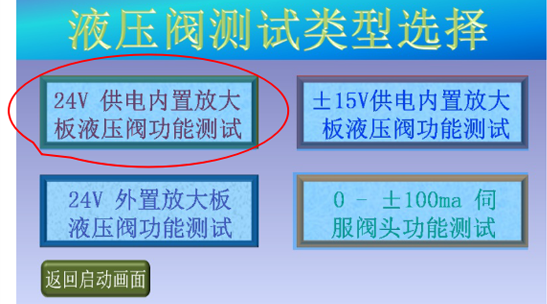 4、點(diǎn)擊“24V供電內(nèi)置放大板液壓閥功能測(cè)試”,進(jìn)入?yún)?shù)設(shè)定畫(huà)面;