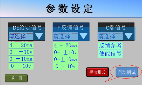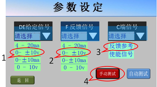 7、手動(dòng)測(cè)試基本正常后,點(diǎn)擊屏幕左下方的返回鍵,返回參數(shù)設(shè)定畫(huà)面;
